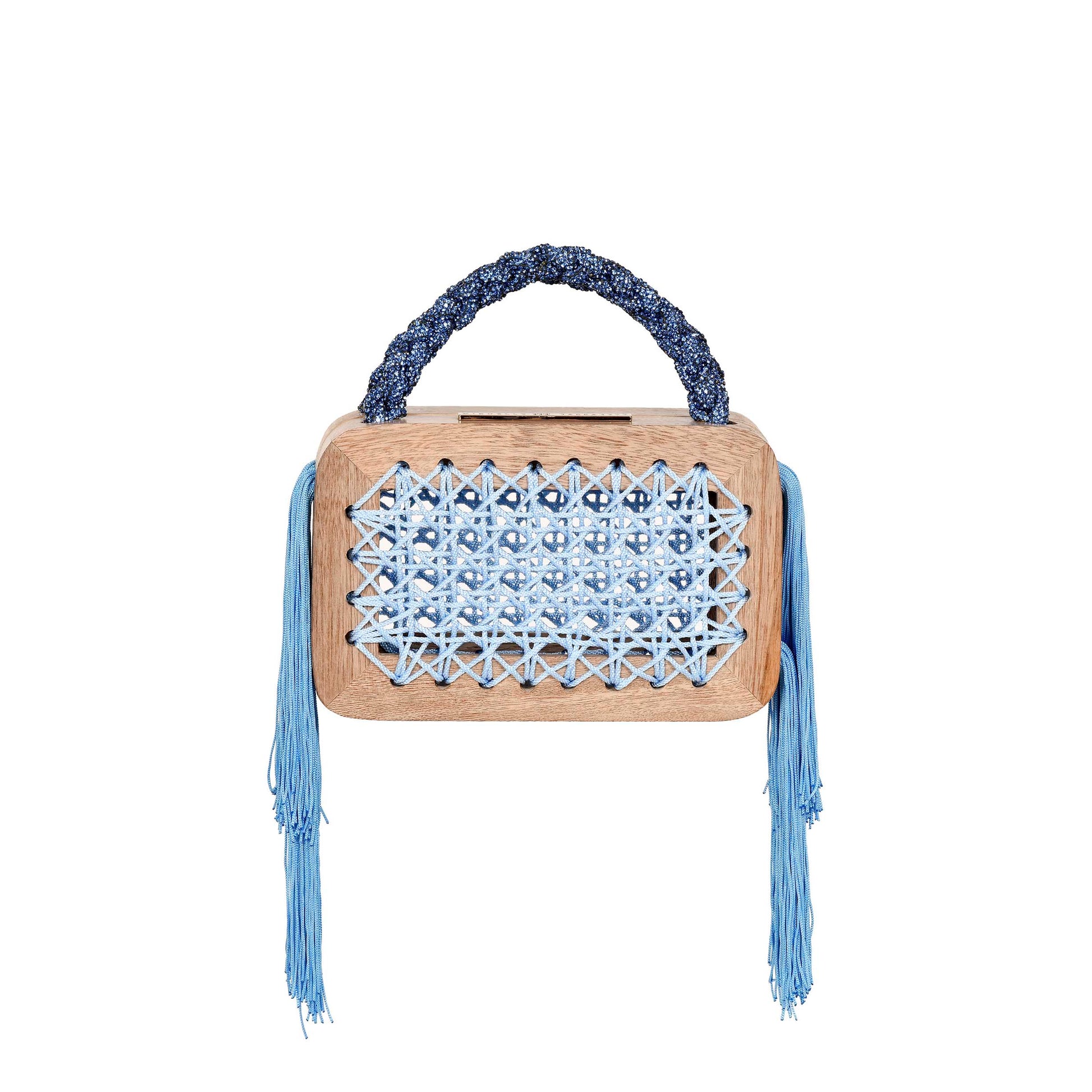 Milli es nuestra cartera “petite” con doble manija y flecos a los lados para llevar como cartera de mano. Está inspirada en el tejido de las mecedoras tradicionales. La madera se deja en su tono natural y es tejida a mano con hilos de colores haciendo juego con el brillo de las manijas.